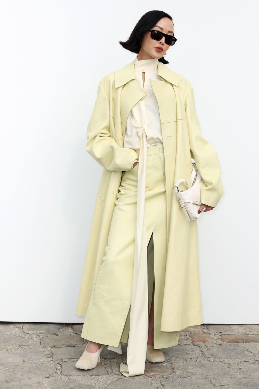 Neutrals can still grab attention in 2023, even at fashion week. The layering here is done well, but it's the luxe caramel jacket that truly sends the look over the edge. The lesson here? Don't be afraid to invest in your outerwear.
