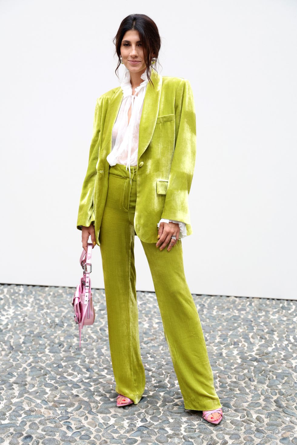 Slime green may have peaked in 2018, but we've secretly wished for a comeback ever since. And to our surprise, that wish was granted as showgoers leaned into the delightfully fun shade. This is a trend meant to be fun and accessible, so choose an outfit or accessory you feel good in, and get your slime on!