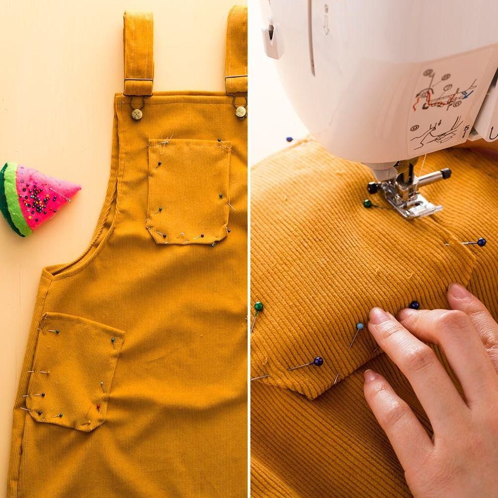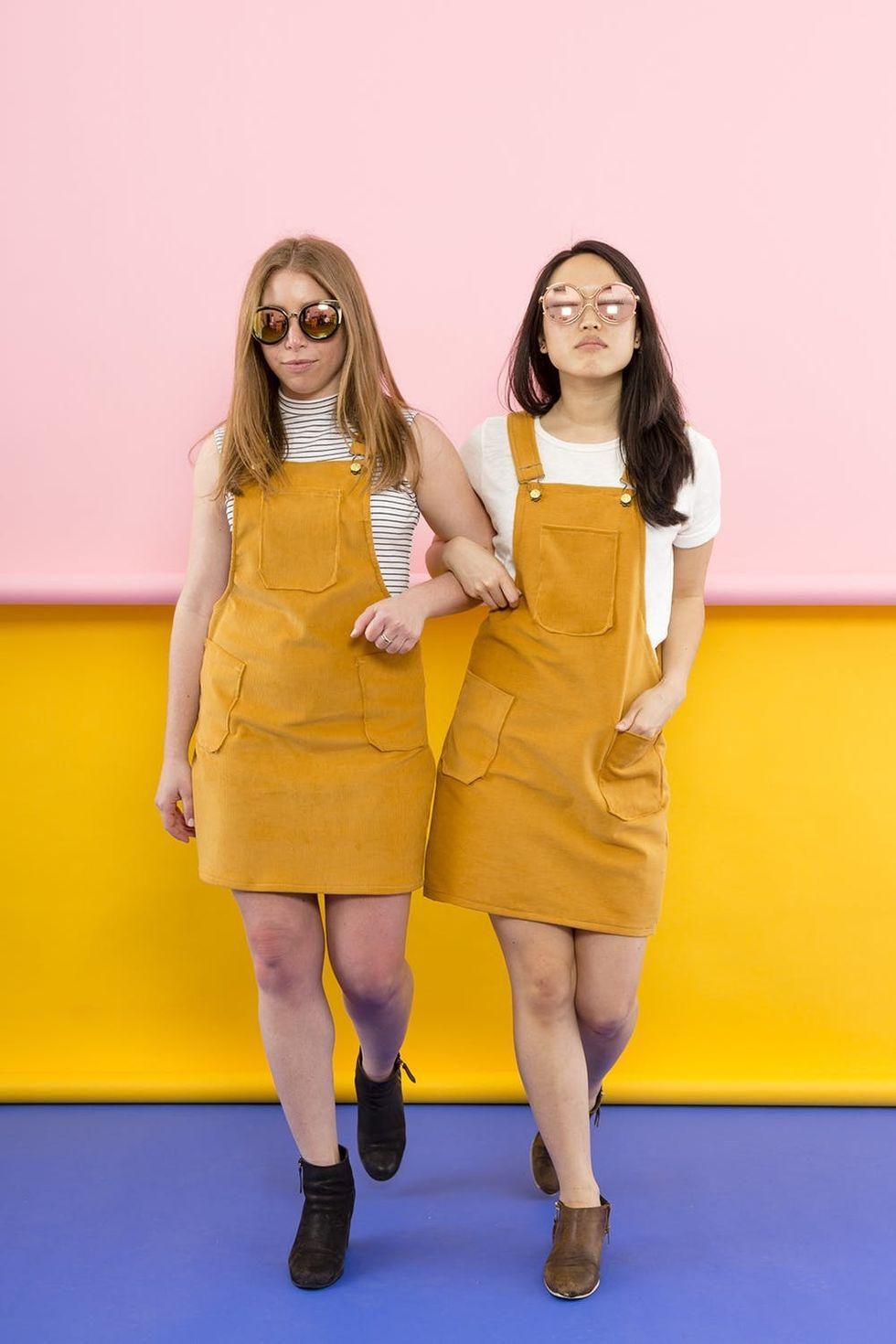 Overalls are back! When I was six years old, I had a pair of pink gingham overalls that I wore once a week for two years. I was pretty in love with them. Sadly, I grew out of them and never got another pair, since they “stopped being cool." Good news is that overalls are trendy again, and today we're showing you how to DIY your very own overall dress.