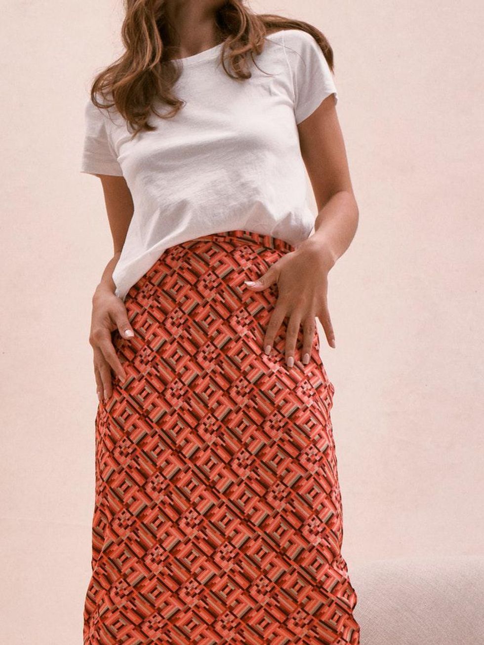 6. Toccin Bias Skirt in Hibiscus Geotile ($250): Punching up your everyday attire doesn't have to involve curating the ultimate lineup of coordinating accessories (especially pre-coffee); this graphic bias skirt will certainly do the trick. Double up on prints and pair with bright lips for maximum impact, or tone down the look-at-me style with a vintage tee and motorcycle jacket for a look that reads off-the-clock cool.