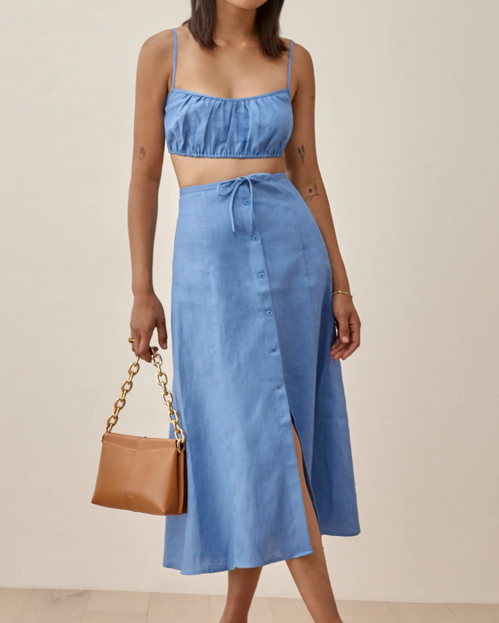 No Hot Girl Summer wardrobe is complete without an attention-grabbing two-piece set. This charming chambray option is sure to have the compliments rolling in.