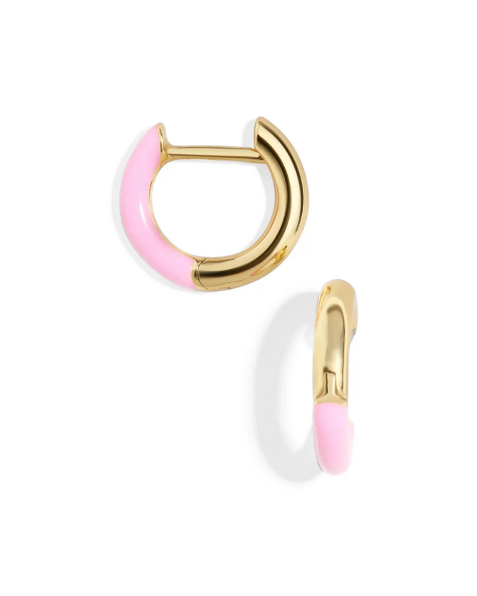Colorful enamel earrings are another grown-up approach to the camp jewelry trend. These huggies still add a youthful touch, without feeling totally child-like.