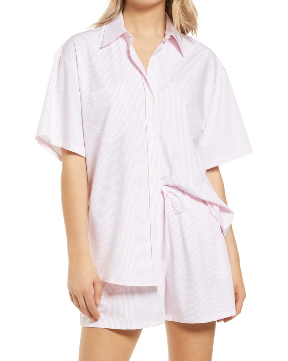Nordstrom also has the breathable cotton shirt set trend covered. This pink set is primed for mixing and matching all season long.