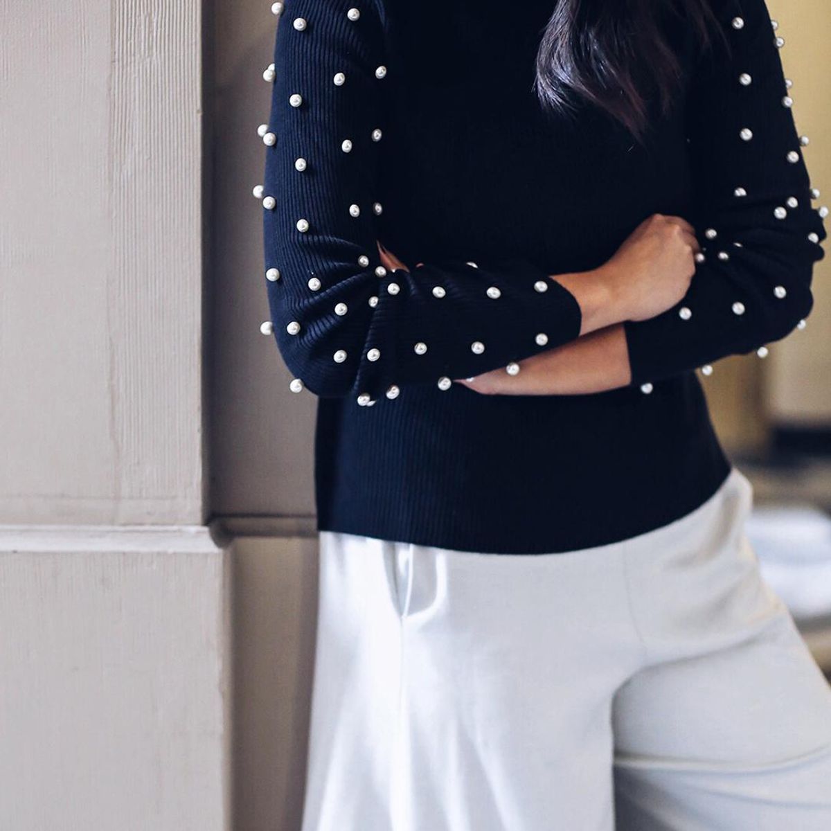 One of our favorite things about fashion is the fact that it can be pretty and fun instead of strictly functional. A sheer top is great for when the weather warms up and it lets the pearls stand out against your skin. Not a fan of sheer fabrics? Embroider some pearls along the rim of your favorite tee.