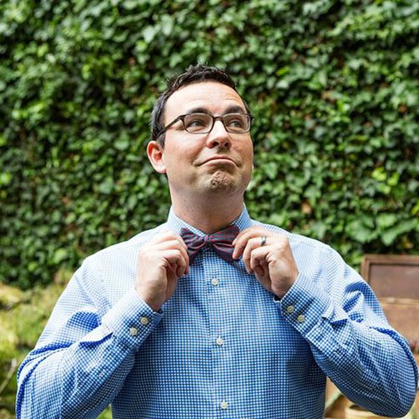 14. Bow Tie: The best look on his face is when he receives just what he’s been looking for and hasn’t found yet. So pick out some fabric in his favorite color and make him a bow tie he’ll love. (via Brit + Co)