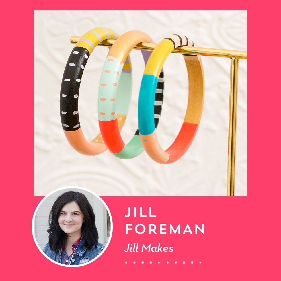 Jill Makes: We are swooning over designer Jill Foreman’s confetti acrylic earrings, skinny painted bangles, and many more baubles in her Etsy shop. Jill earned a BA in Graphic Design and worked as a graphic designer and product designer for eight years before opening Jill Makes in 2013. Her focus on designing pieces with a modern, artful aesthetic has inspired a unique, colorful jewelry and accessories line.