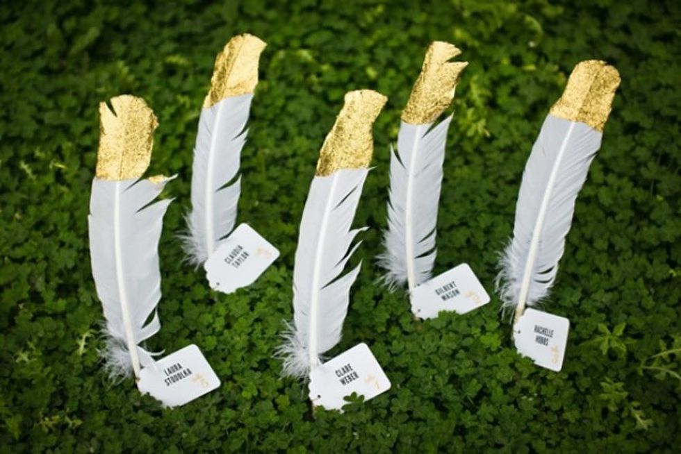Shake your tail feather out on the dance floor with gold-dipped feathers billowing above. (via Bleu Bird Vintage)