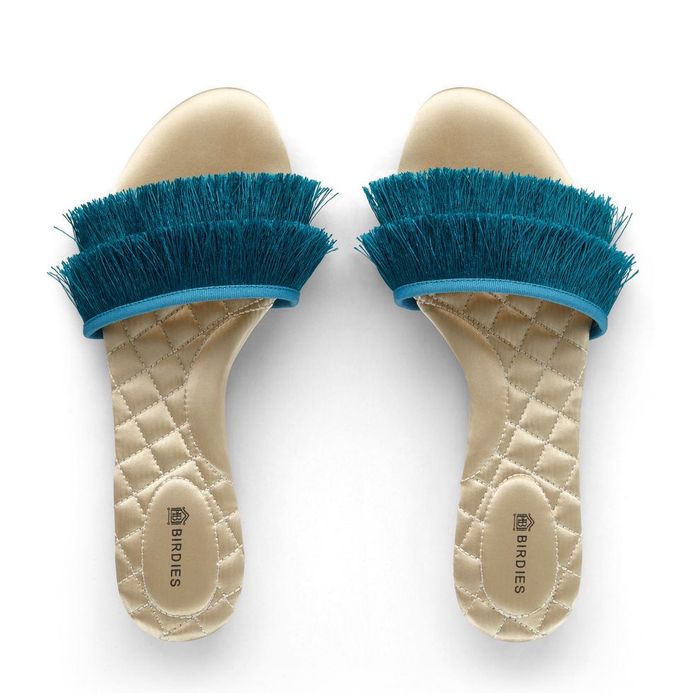 Birdies Resort Collection ($95+): Inspired by the tropics, these shoes belong in your vacation bag stat. Slip into two new styles from the footwear favorite — both open-toed with fringe and the brand's signature satin quilting. Choose from marigold, sangria, black suede, azure, or peach.
