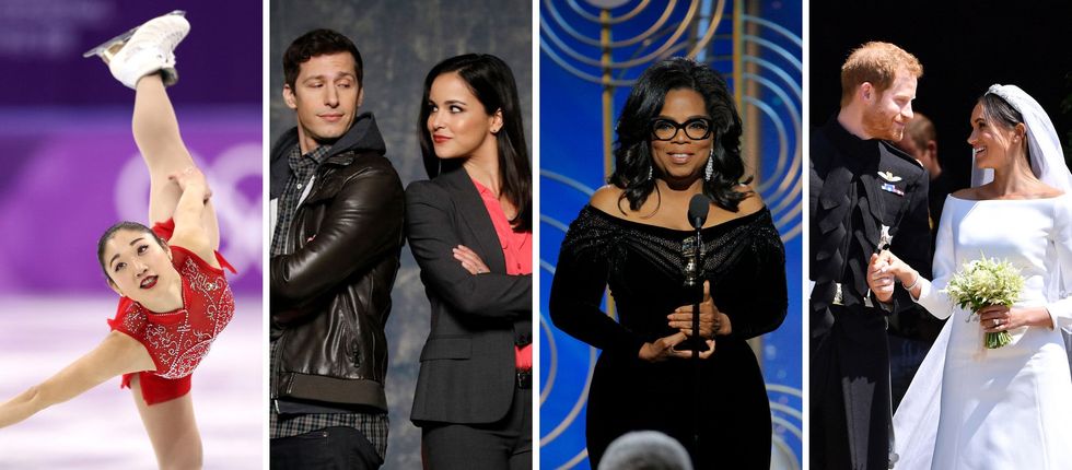It would be easy to look back at 2018 and only see the political and social turmoil that dominated headlines for most of the year. But amid that turmoil, there were moments of joy and inspiring acts of kindness that reminded us of all the good in the world. Click through to see 14 feel-good pop culture highlights from 2018. (Photos via Richard Heathcote/Getty Images + NBCUniversal + Paul Drinkwater/NBCUniversal via Getty Images + Ben Stansall/WPA/Getty Images)