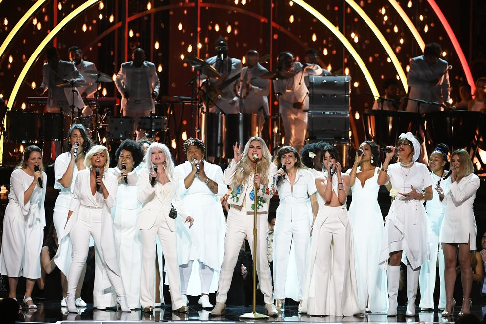 Kesha brought everyone to tears at the Grammy. In January, just after the launch of the #TimesUp movement, Kesha delivered one of the most poignant performances of the year at the 2018 Grammys. Taking the stage with more than a dozen other artists, including Camila Cabello, Julia Michaels, Cyndi Lauper, and Andra Day, the "True Colors" performer sang "Praying," which she wrote amid her ongoing legal battle with Dr. Luke. (Photo via Kevin Winter/Getty Images for NARAS)