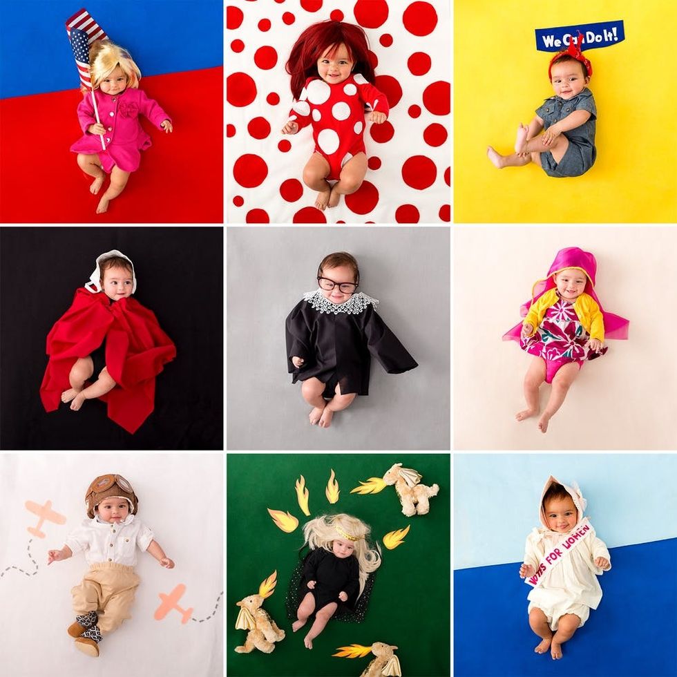 Anjelika Temple here, Chief Creative Officer of Brit + Co and brand new mom to baby girl Anokhi. I’m pretty much obsessed with Halloween. Always have been. In the last six years, I’ve donned over 50 solo costumes, 20 couples costumes with my husband David, and even a handful where I twinned with my pup Turkey. When I found out I was having a daughter, I may or may not have started brainstorming Halloween costumes before I started thinking about names ;) I immediately fell in love with the idea of dressing my little girl up as some of my favorite badass babes and female role models throughout history. Scroll on for nine baby Halloween costume ideas for the littlest feminists in your life.