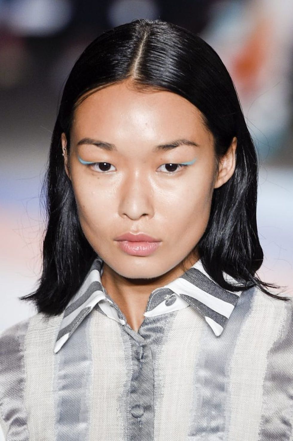 4. Electric Blue Wing Tips: The metallic blue wing tips on this otherwise nude eye stole the spotlight this season. Hack the style with some jewel-toned liner — then slay on, sista! (Photo via Peter White/Getty)