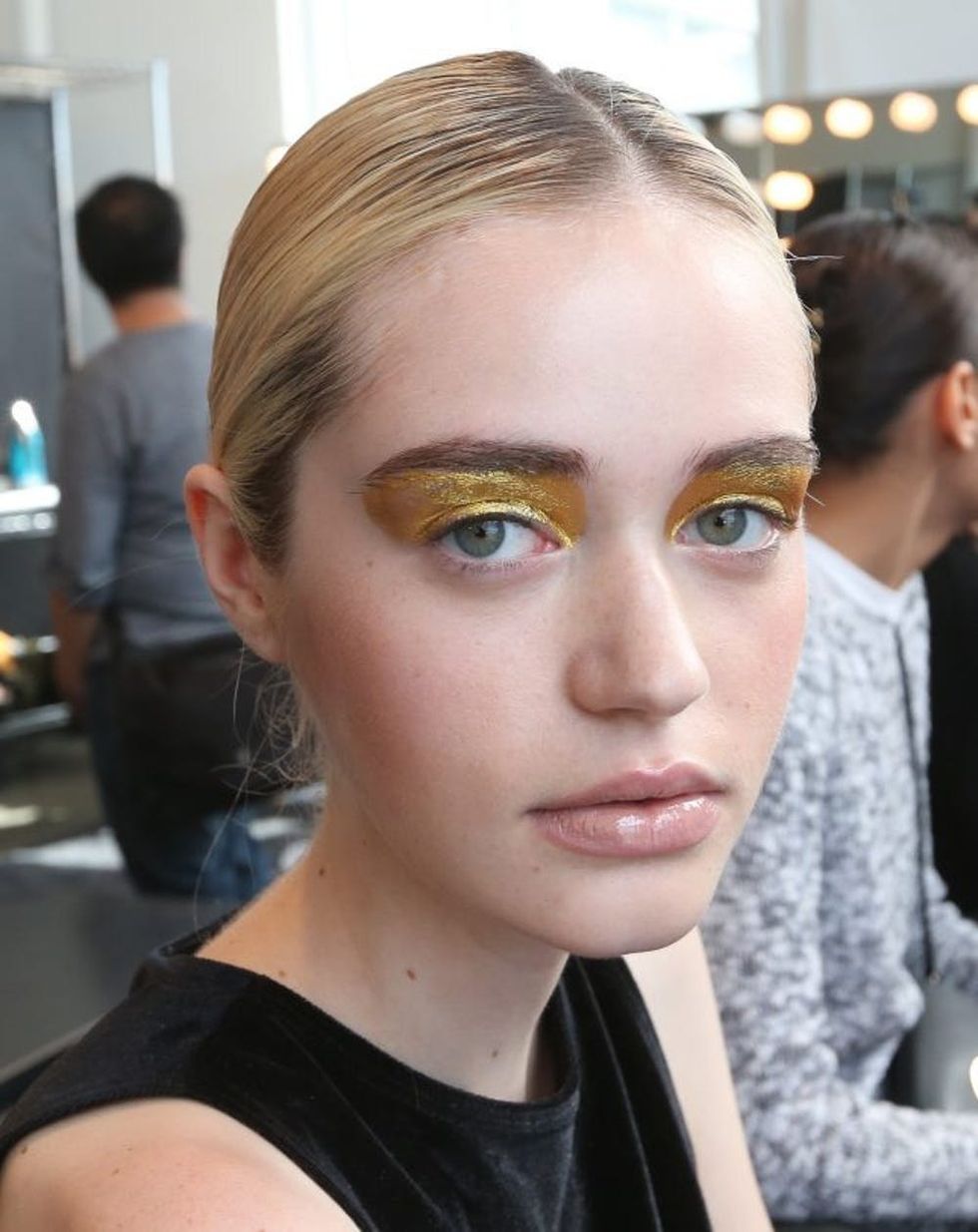 6. Metallic Eyes: Coachella is the perfect time to get playful with your new foil eyeshadow. Metallic gold is the trendiest option for a bohemian weekend that’s laid-back AF, but there’s a rainbow of concert-worthy shades to choose from. (Photo via Rob Kim/Getty)