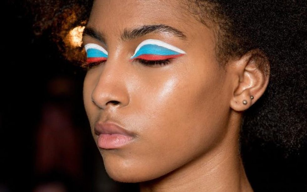 7. Layered Shadow: Why settle for one shade when you can have three? This triple-decker statement shadow makes for an eye-catching look. Wear sans mascara to let the vibrant colors take center stage. (Photo via Nicky Sims/Getty)