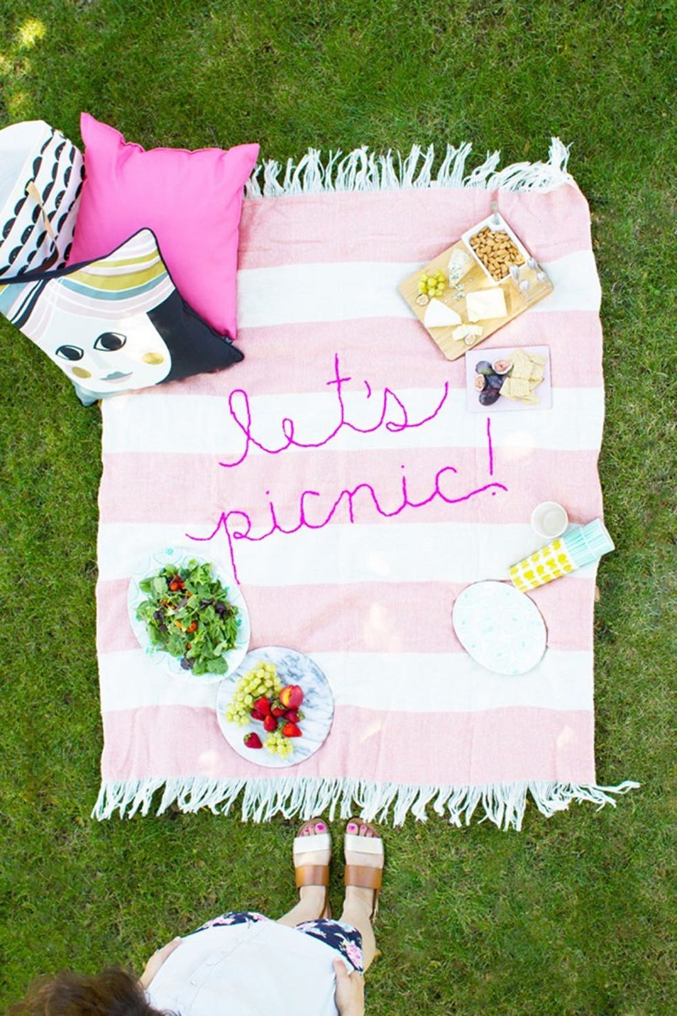 5. DIY Giant Embroidery Picnic Blanket: You can’t stand all day. Bring along a large picnic blanket and stake out a space just for you in high style. (via Lovely Indeed)