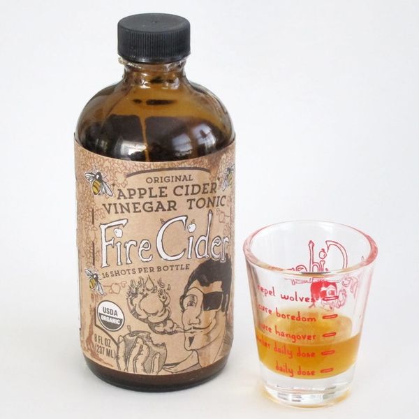 It’s easy enough to make your own version of this tonic at home, but you’ll need to let it infuse for several weeks at a minimum. If you’re looking for a more immediate payoff, you can purchase already-made versions. For my experiment I used Shire City Herbals’ Fire Cider Original Apple Cider Vinegar Tonic ($15), a tonic with certified organic ingredients like live raw vinegar, raw wildflower honey, oranges, lemons, turmeric, habaneros, and black pepper, in addition to the typical ginger, horseradish, and garlic. (They also make a honey-free version that’s vegan.)