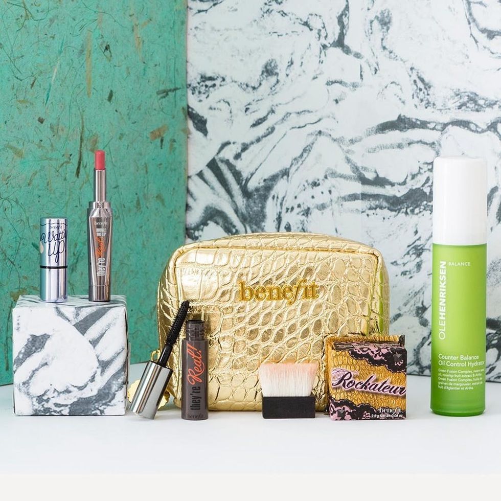 Benefit Cosmetics Date Night With Mr. Right Sexy Night Out Makeup Kit ($32): If you’re spending the day outdoors, getting that sun-kissed glow out the gate is where it’s at! Apply What’s Up cream-to-powder highlighter to your cheekbones, brow bones, bridge of your nose, inside corners of your eyes, and right above your cupid’s bow, and blend by tapping your finger over. Your cheeks and eyes will brighten up with a sweep of Rockateur rose gold blush. Runny mascara is not an option but They’re Real mascara will keep your lengthy lashes through any activity! Lastly, hydrate and protect your lips while also getting a lusty rose tint with They’re Real Double lipstick.
