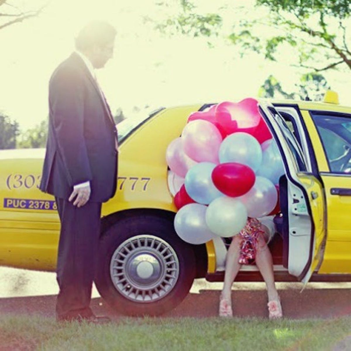 12. Bunch of Balloons: Who needs a limo? Blow him away by arriving in a cab and carrying a beautiful bouquet of balloons. (via Fresh in Love Photography)