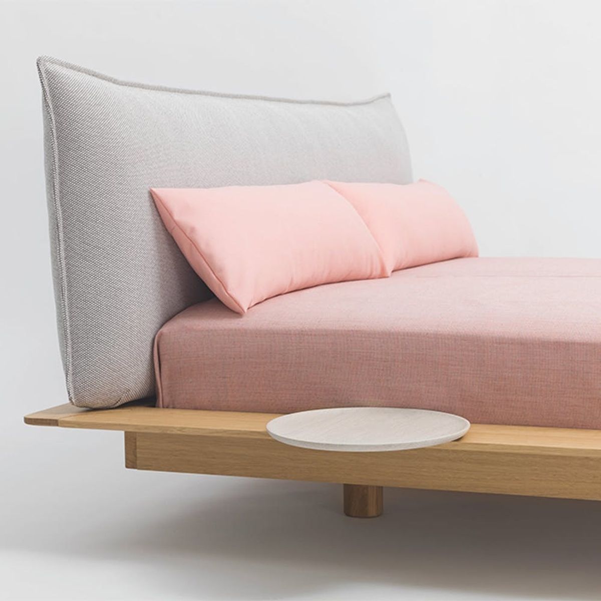 The Yoma has a frame made of solid wood with rounded corners, so no banging your knee in the middle of the night. The cushions can be moved around for your comfort while reading, sleeping, or lounging, and the side of the bed is wide enough to act as a shelf. (You can also add the Yoma Plate side table for your water or book.) There may actually be enough room to hold everything you need for an entire weekend in bed. Swoon.