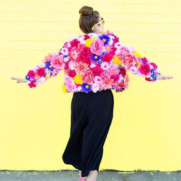 Who said flowers were just for centerpieces and bouquets? This rockin’ coat is sure to be the ultimate showstopper! Unless there’s a big sale on faux blooms happening RN, save money by grabbing the “filler” flowers at a dollar store, and invest in your must-haves at the craft store. (via Studio DIY)