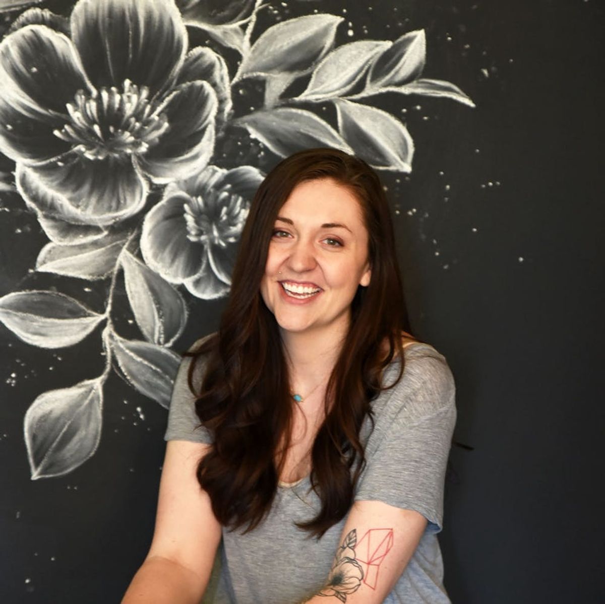 From writing and designing at Hallmark to creating unique artwork for an advertising agency, Instagram star Casey Ligon has always put an emphasis on her creativity. It was only a year and a half ago that she discovered a new talent in the ever-popular chalk art, which has since launched her to Instagram fame and enabled her to start a small business. Her trademark beautiful, ethereal chalk flowers often cause viewers to mistake her work for paintings. Lucky for us, Casey sat down to show us the step-by-steps for how to create a statement chalk wall. Read on to see how she did it!