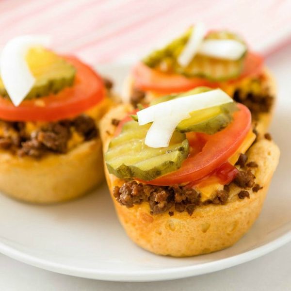 Mini Cheeseburger Muffins: Get dinner on the table in minimal time with these mess-free (and adorable) cheeseburger muffins that are assembled and baked in a muffin tin. (Photo via Kurt Andre / Brit + Co)