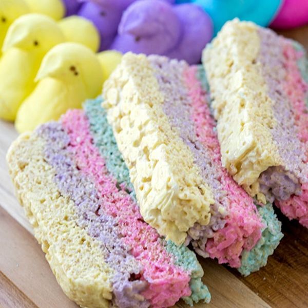 Any holiday dessert that calls for marshmallows can be dressed up in Easter pastels when you substitute Peeps! Serve these colorful Easter treats sliced up in rainbow squares, or insert sticks and hand them out as pops. (via Yellow Bliss Road)