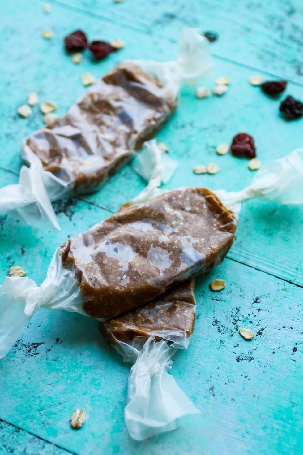 We used cherry preserves and dried cherries in the no-bake mix, but other options (think grape jelly and raisins or blueberry jam and dried blueberries) would be tasty too. Wrap them in waxed paper, because they're soft, and definitely store them in the fridge or freezer (put them in your cooler for your road trip).