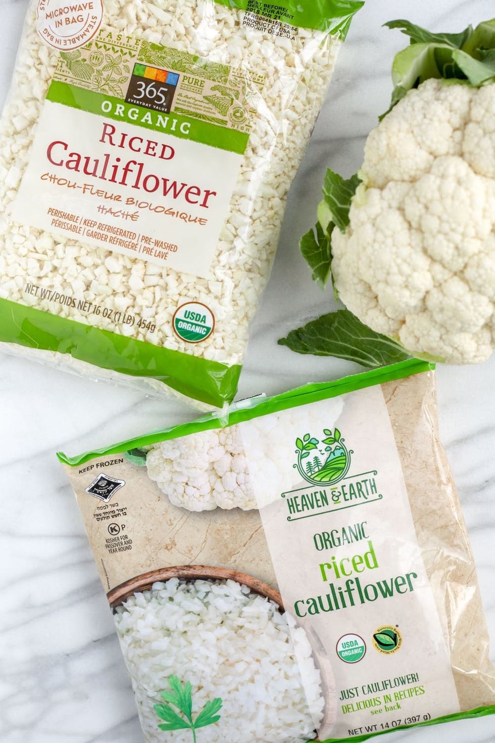 B+C: A resounding yes! Generally speaking, we steer clear of the pre-chopped fruits and vegetables section, as they’re typically both expensive and less-fresh than buying a piece of produce and prepping it ourselves. But we’re fully on board with pre-riced refrigerated or frozen cauliflower rice, as ricing it yourself can be a bit messy. If we plan to cook the cauliflower rice within about 48 hours of purchasing, we go with the former (refrigerated). If we won’t be cooking it until later in the week (or even months later), we purchase the latter (frozen), as the former tends to get a little soft and smelly after a few days in the fridge.