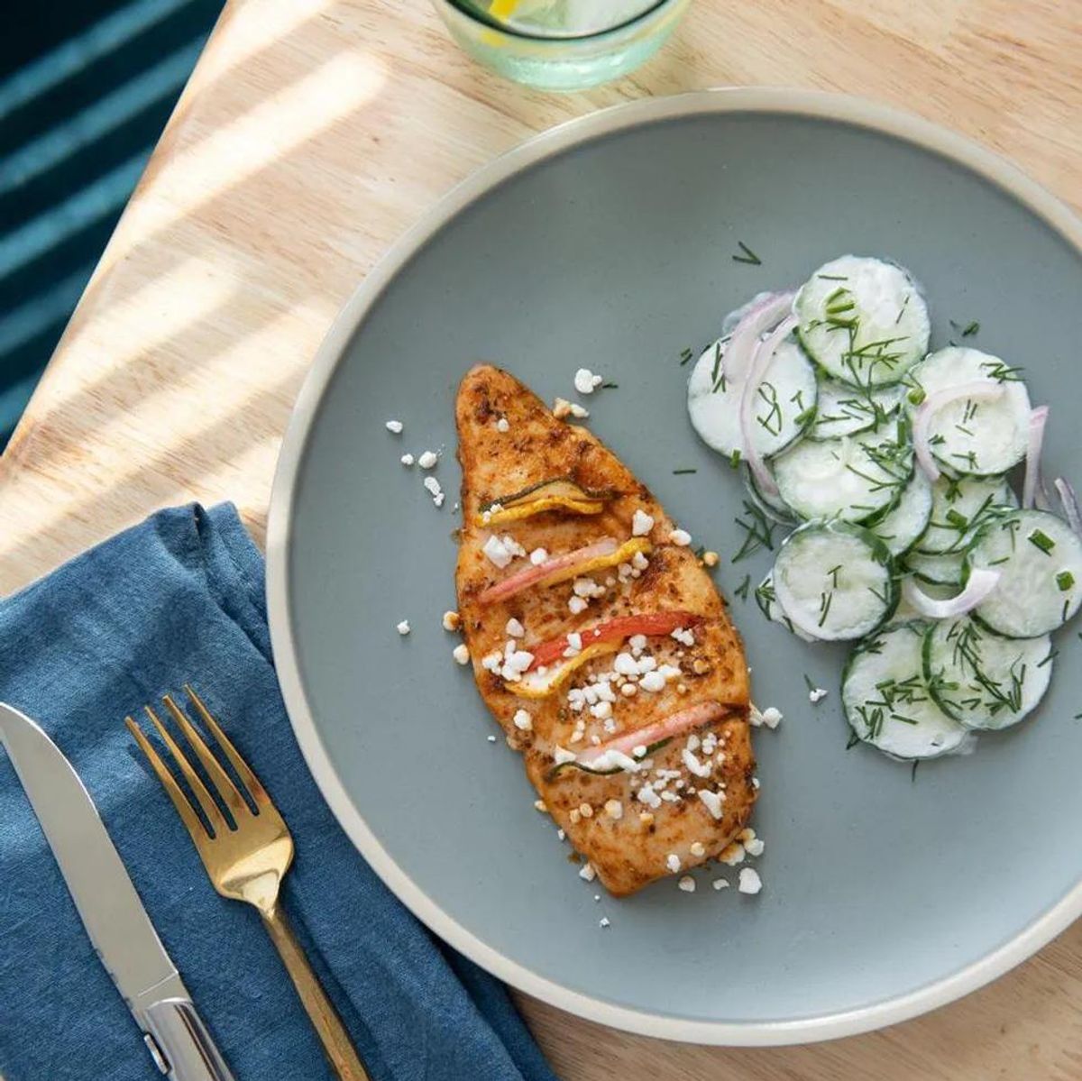 Make slices in your chicken (just be careful not to actually slice it into multiple pieces) and stick your go-to veggies right inside the chicken breasts. The flavors will fuse together in a really delicious way, plus the finished product looks super cool. (via Brit + Co)