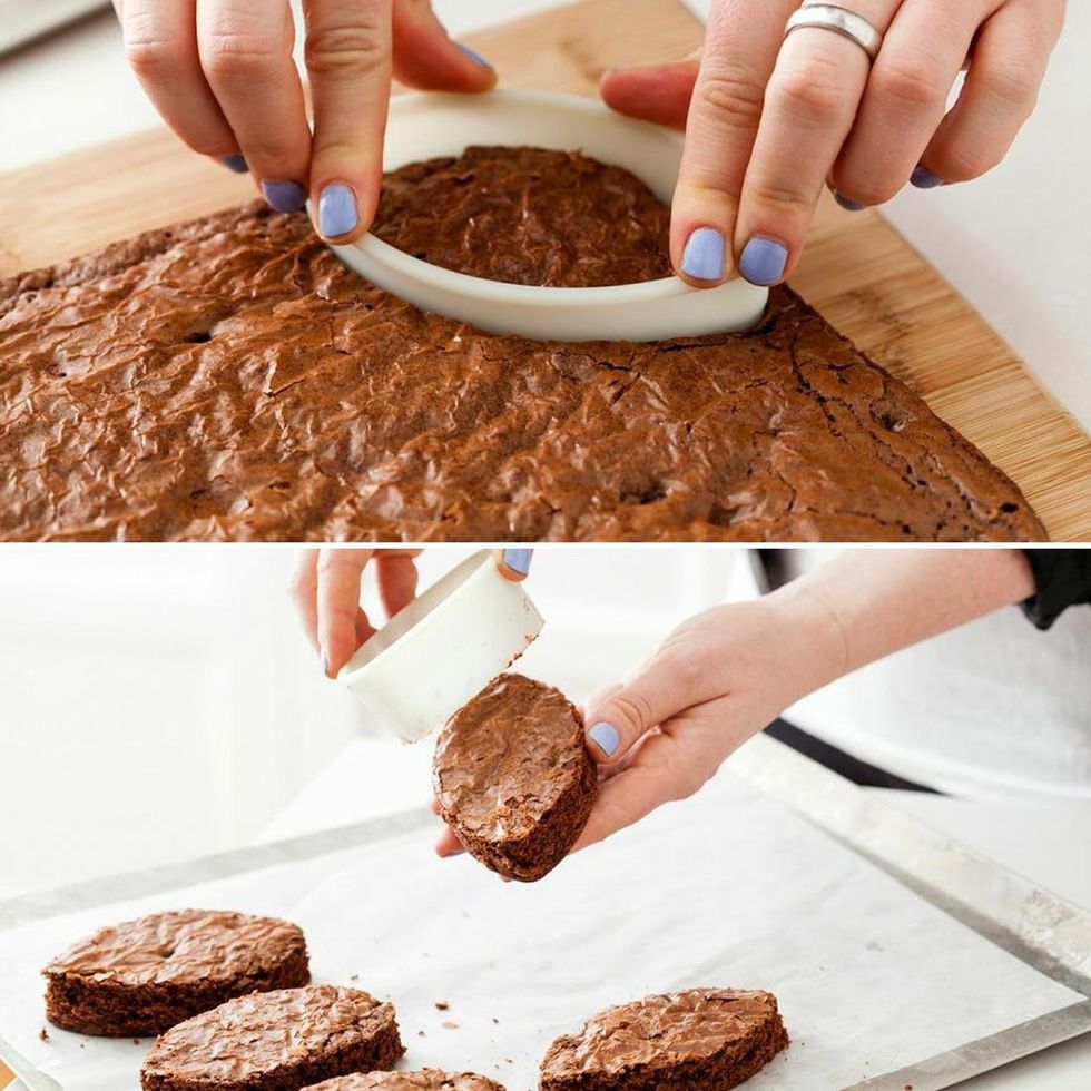 3. Bake for 32-35 minutes. Let cool. Use a football-shaped cookie cutter to cut out the brownies. Place them on a cookie sheet lined with wax paper.