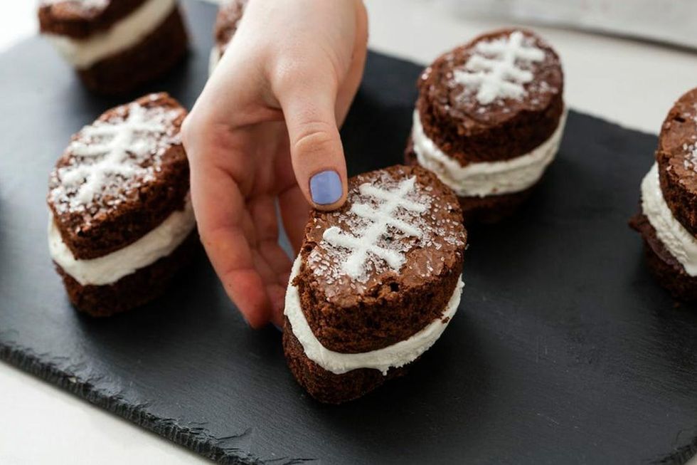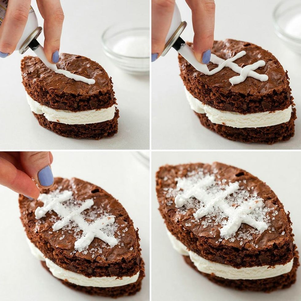 Win Big on Sunday with Football Brownie Ice Cream Sandos