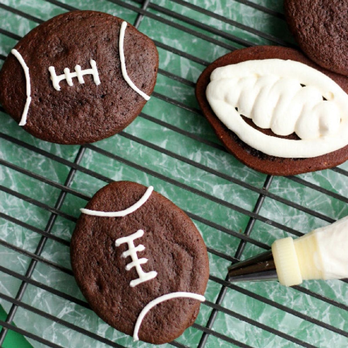 15. Football Whoopie Pies: Chocolate and vanilla may be the most classic flavor combo out there, but you can definitely play around and make these footballs with your fave whoopie pie recipe. (via Culinary Couture)