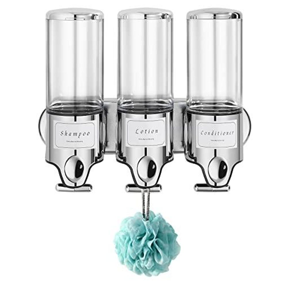 Stop fumbling with all of those shampoo, conditioner, and soap bottles you've hoarded from hotels. Just stop. Get yourself a three-in-one wall dispenser set, and yes, if you want to be frugal, you can totally squeeze all of those bottles into the dispenser and save some bucks.