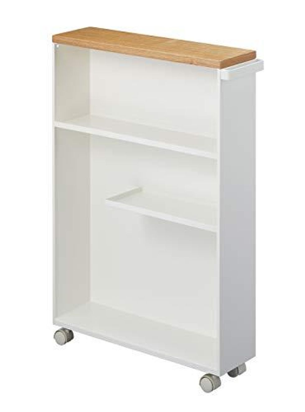 This sleek, minimalist bathroom cart can stow away all your bathroom necessities like toilet paper, cleaners, plungers, and other clutter. It can fit in the tightest of spaces, and since the back is enclosed, you can keep everything hidden by spinning it around to face the wall if you like.