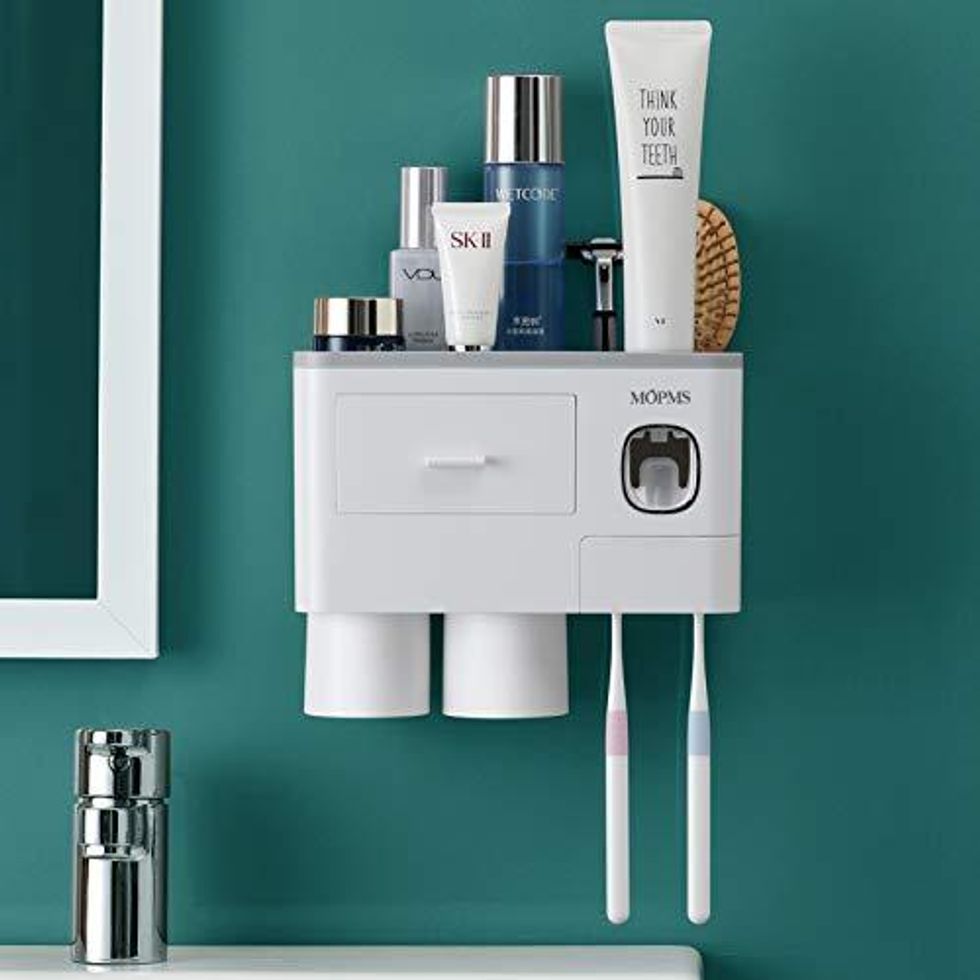 Nope. You're not cleaning toothpaste off of that counter ever again. This toothpaste dispenser and toothbrush holder will organize and tidy your space and let you get the last drop of paste out of your tubes, too.