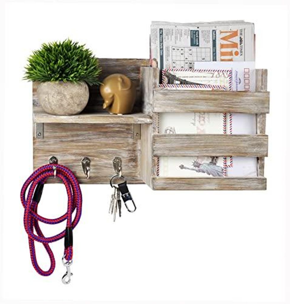 This key holder can also hold your dog leash, your mail, and any other small items you may want to grab on your way out of the house. Hang it on the wall near your departure door and avoid the dreaded dump tray.