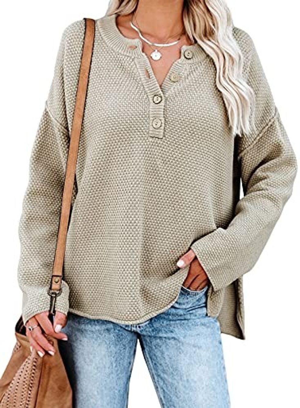 Speaking of sweater weather, how perfect is this waffle knit pullover? From rust to olive green, it comes in several colors you'll love for fall and has the coziest texture that will remind you of your favorite blanket. With a cute henley detail and oversized fit, this sweater will be your go-to throughout the season.