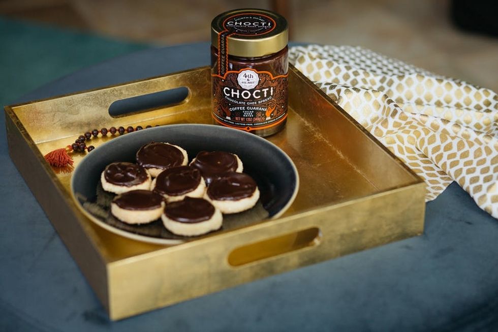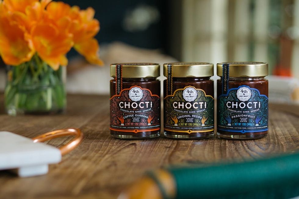 Spreading Chocti on toast is the obvious go-to (or in my case, eating it straight out of the jar). But the spreads are also great inside crepes, as a dip for fruit, or drizzled like hot fudge on ice cream shakes. People on Instagram have gotten really creative and used the spreadable stuff to ice cookies and cupcakes, bake brownies, make hot chocolate or chocolate milk, and even add sweetness to mole sauces. Because the Coffee Guarana flavor contains 5 1/2 milligrams of caffeine per tablespoon, devotees swear it gives them a pre-workout boost. I like to give a spoonful of it a whizz in my blender along with some hot coffee for an unexpected spin on the Bulletproof coffee trend.