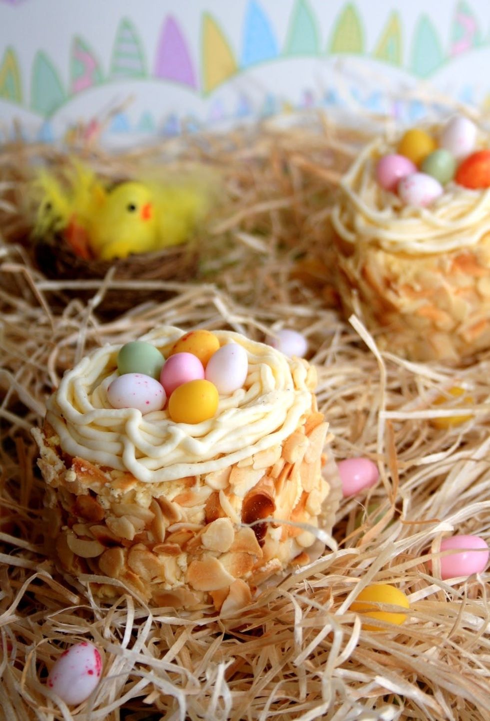 2. Petits Nids de Pâques: In France as well as in the United States, Easter holiday is inescapably intertwined with images of new life like eggs and bird nests. The French took this symbolism to mind and created a decorative pastry version of birds nests made from almond cake, topped with thin ribbons of frosting, and then filled with chocolate eggs. (via Amandine Cooking)