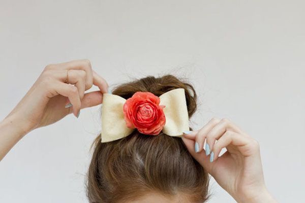 10. Fresh Flower Bow: Why have we never thought of this before? So simple AND reusable! To easily replace the flower, glue it to a small circle of felt and use a safety pin to attach the flower to the bow. (via Studio DIY)
