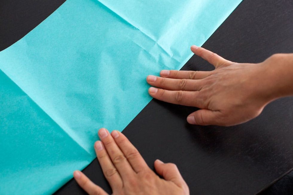Make sure all your tissue paper is the same size, then fold in half lengthwise.