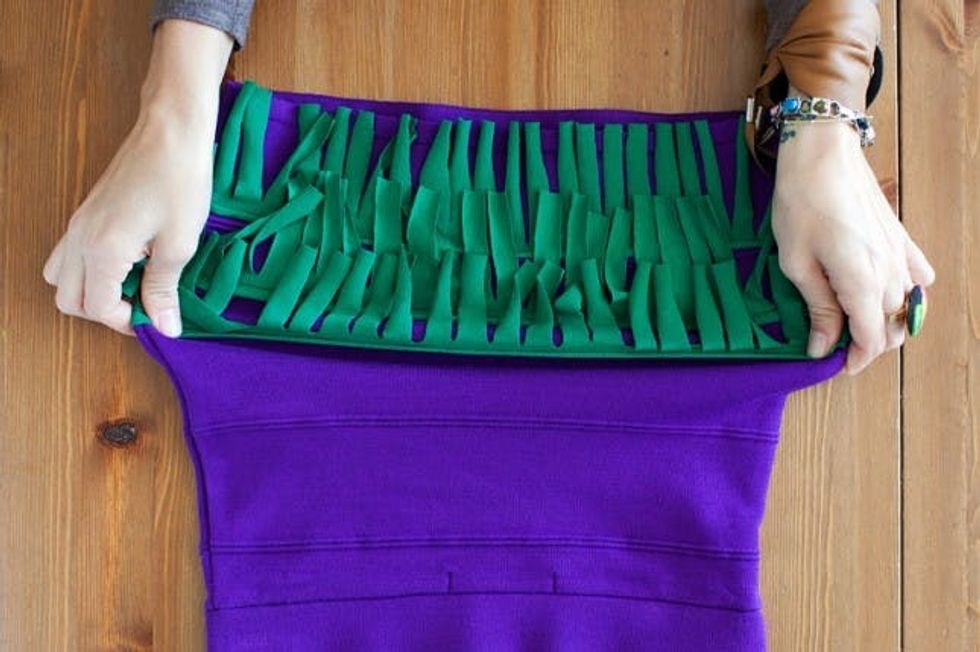 Repeat with as many layers as you like. You want the fringe to cover the top of the layer below it, so the seam doesn’t show too much.