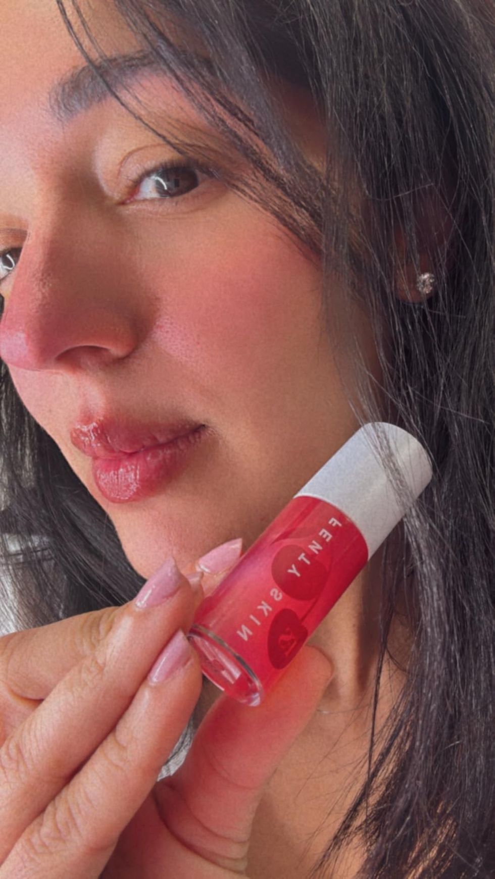 The cherry treat conditioning lip oil is what you'd wear in a kissing scene. It glides on like a dream, smells like a cherry popsicle, and leaves your lips soft and glossy. Think skincare with a flirty twist.