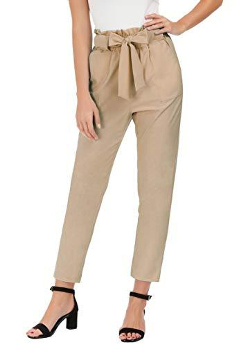 Here's a pair of pants that is super versatile and will have you feeling spiffy from the office to date night: these paper bag waist pants have a slight crop so you can show off your favorite pumps or pair of boots, and with a ruffle detail at the top you'll feel extra special.