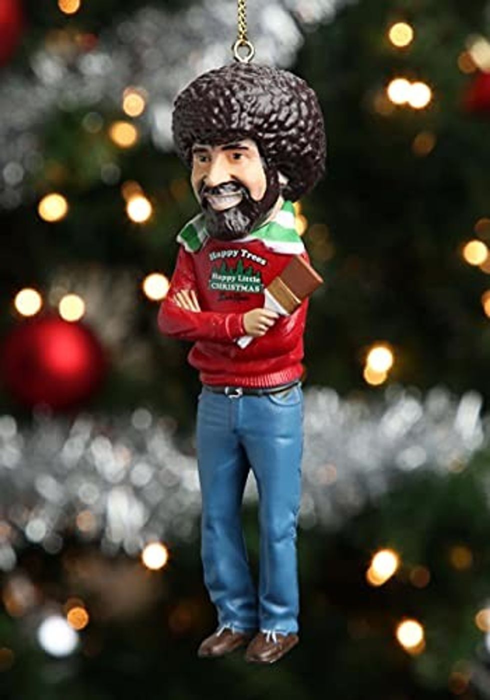 The late painter Bob Ross is an icon of kindness and dedication to one’s craft. So, of course, he deserves a spot on your tree in the form of this Bob Ross "Happy Little Christmas" ornament. Just look at that impressive afro.