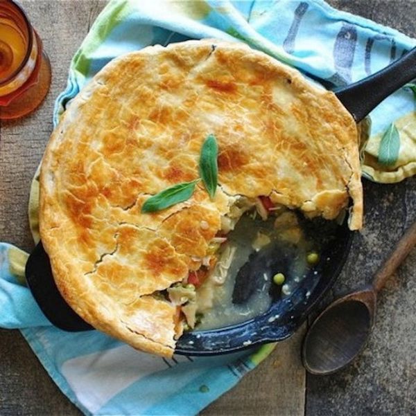 8. Cast Iron Skillet Chicken Pot Pie: Break out your cast iron skillet. It’s the ultimate vessel for whipping up a creamy chicken- and veggie-filled pot pie. Made with just a single crust, the ratio of pastry to everything else is pure perfection. (via Bev Cooks)