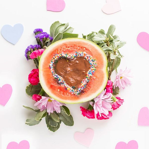 Now it’s not really watermelon season, but this pink fruit is the perfect serving dish for your Valentine’s Day brunch or party. Cut it the long way for maximum heart-cutting surface area.