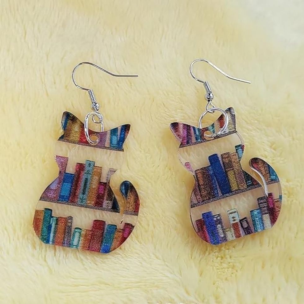 These earrings combine two great loves - cats and books. The rainbow of color makes them a bold choice, while the lightweight design won't drag the ears down.