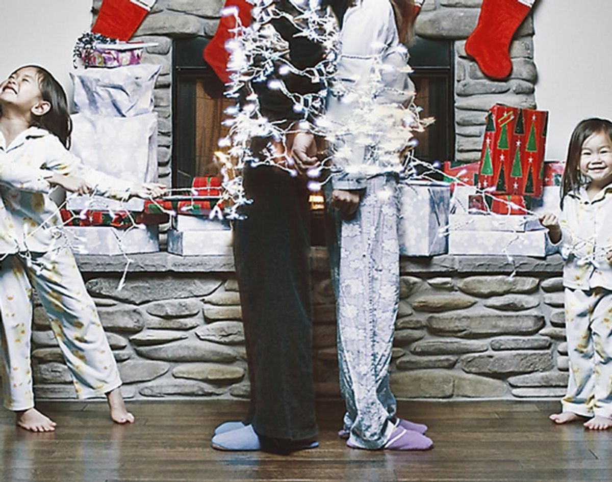 1. All Wrapped Up: The kids will totally cooperate with the annual holiday card photoshoot if tangling the adults in lights is in the shot list. (via Jason Lee Photography)